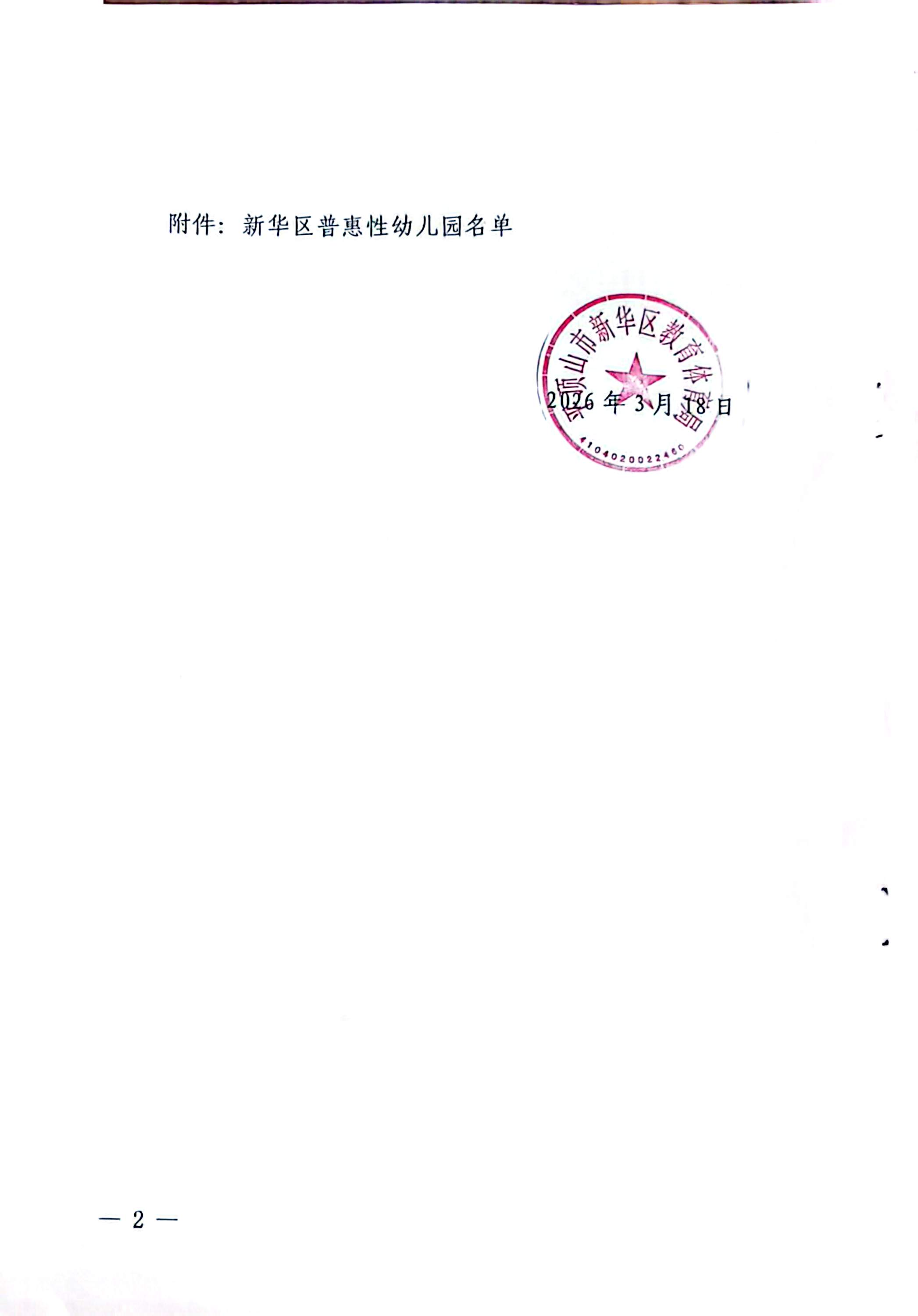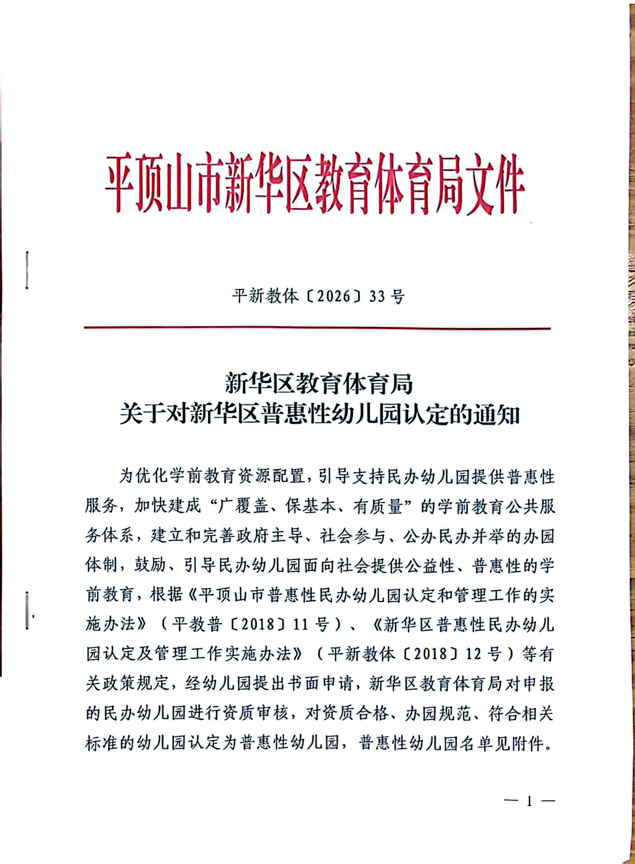 关于对新华区普惠性幼儿园认定的通知